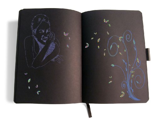 Black Page Journal / Black Page Notebook ideally suited for arts and crafts and all school projects, exceptional strength and durability. Popular European Style with Pen Loop. Elastic Closure Strap.