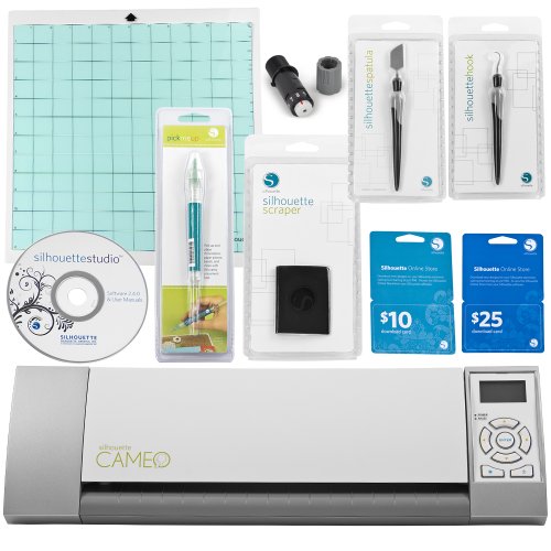 Get it Now Silhouette Cameo Digital Craft Cutter with Janome Artistic Pack including 4 Tools and $35 in Downloads! from Amazon