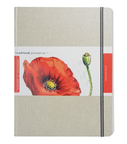 Hand-book Trav-e-logue Watercolor Book 10-1/2-Inch by 8-1/4-Inch, Grand Portrait is bound in natural linen and offer watercolorists an attractive and practical option for travel painting. The books feature 60 pages of soft-white, acid-free, 200 gsm (95 lb) watercolor paper with a pleasing cold-press finish. It has a durable elastic closure and a very useful clear envelope tucked inside the back cover. These watercolor books are ideal for the artists looking for a portable watercolor sketch book.