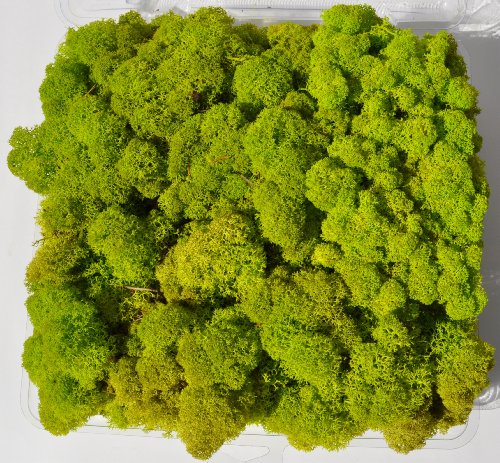 - According product rating in major online retailers, one of good products to buy is Reindeer Moss, Preserved - Spring Green (Chartreuse), 20-Ounce (1.25 Pounds) in a Designer Series Clear Case. (Reico Art 108055 - Soft and Colored Reindeer Moss)
